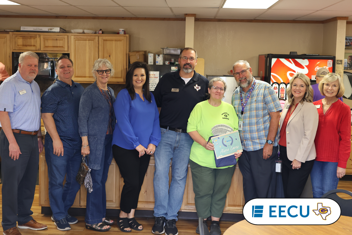 Alyse Carey was presented with the EECU Granbury ISD Customer Care Award, a recognition award given to a deserving employee, during Breakfast with the Board at the Transportation Department on Wednesday, October 8, 2025. At the presentation, Director of Transportation Brian Caruthers praised Alyse for her dedication to students. “Alyse always shows up with a “can-do-attitude” and an eye on safety. She has a wonderful relationship with the students and parents on her route." The district thanks EECU Credit Union for the gifts presented to our Customer Care recipient.