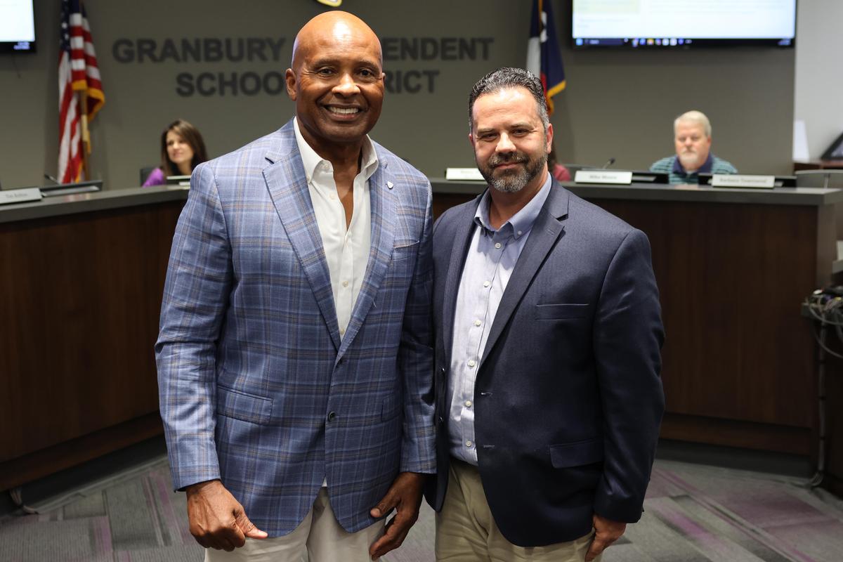 Granbury ISD officially swore in newly elected trustees Dr. Calvin Lawrence (Place 5) and Stuart Neal (Place 7) at last night’s Board meeting. Barbara Townsend (Place 6) was re-elected and will take the oath at a future meeting. Congratulations to all three trustees as they begin their new three-year terms of service to our students, staff, and community.