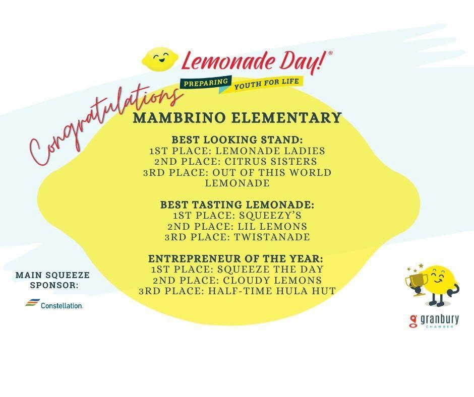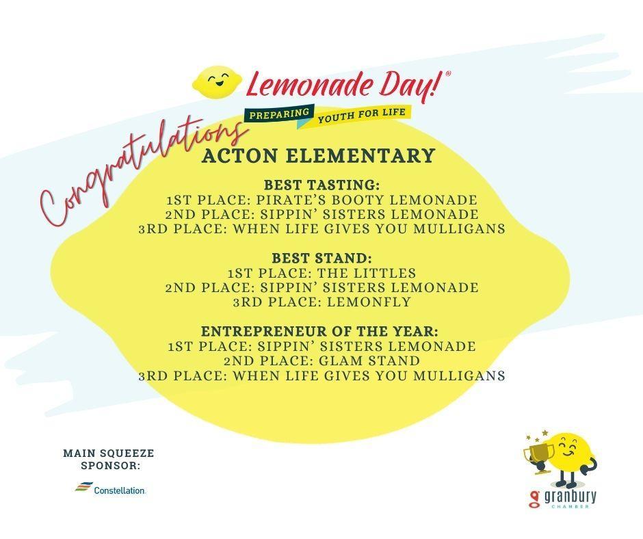 Entrepreneurial spirit is alive and well in Granbury, Texas as 5th graders from GISD schools learn about and open their own lemonade stands all over the community. As they learn how to start a business, the nationally-recognized Lemonade Day allows these students to put into practice what they have learned about starting and running their own business!