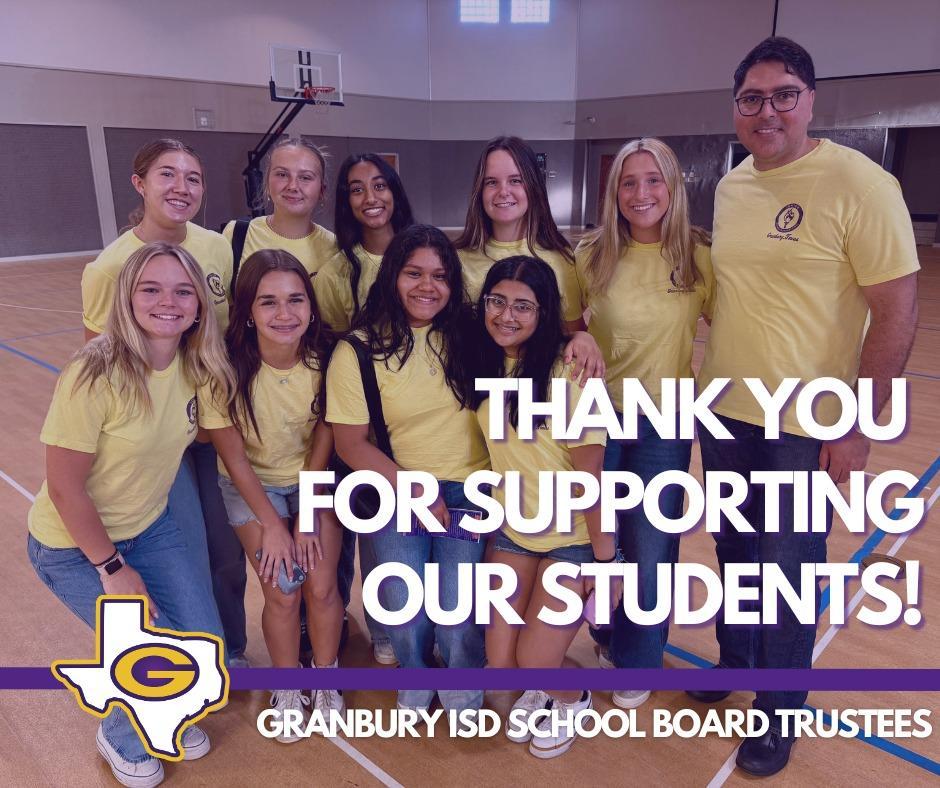 Donation from an anonymous donor to Granbury Middle School campus activity account to purchase PE shirts $1,000.00